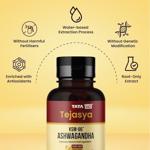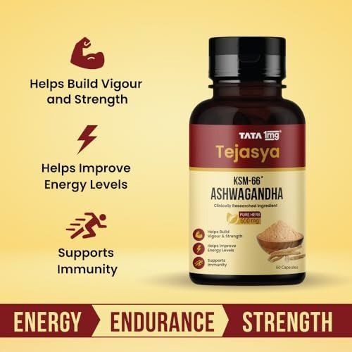 TATA 1mg Tejasya Ashwagandha KSM-66 – 60 Caps – Fast Shipping to USA & Canada