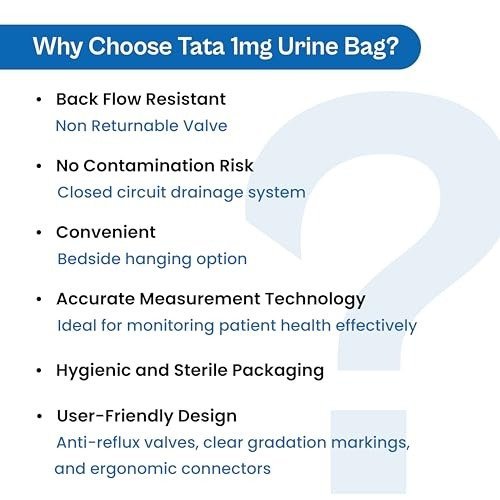 Tata 1mg Urine Collection Bag with Non-Return Valve, 2L Capacity, Kink-Resistant Tubing & Easy Drainage Outlet – Fast Shipping to USA & Canada