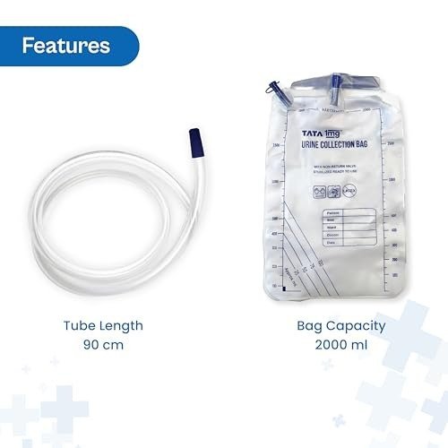 The Tata 1mg Urine Collection Bag offers a reliable and sanitary method for collecting and disposing of urine. Crafted from non-toxic, non-pyrogenic materials, it upholds strict hygiene and safety standards. Suitable for hospitals, clinics, and home care environments, this bag delivers both comfort and ease of use for patients and caregivers alike.