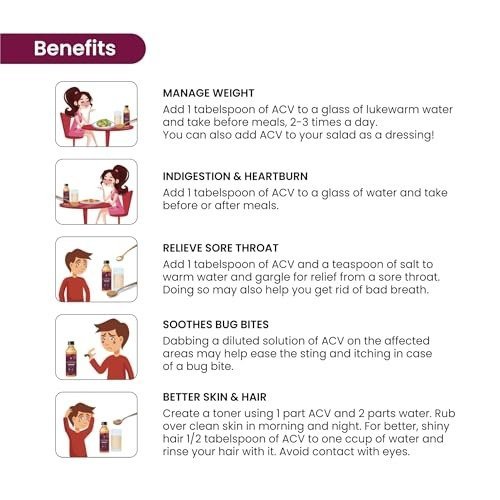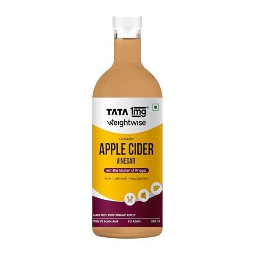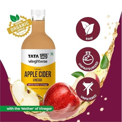 Tata 1mg Weightwise Organic Apple Cider Vinegar with the “Mother of Vinegar” offers a potent, natural approach to promoting healthy weight management and general well-being. Crafted from high-quality organic apple juice, this unfiltered, raw, and unpasteurized vinegar retains live “mother” strands for maximum effectiveness. Renowned for its ability to enhance metabolism, this apple cider vinegar aids in weight reduction by naturally increasing fat burning, improving digestive health, and boosting overall energy. Free from artificial additives, it is a pure and organic choice to complement your healthy lifestyle.