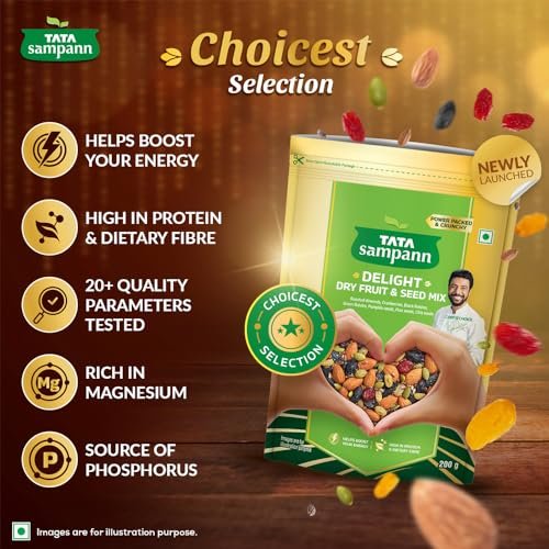 - OVER 20 QUALITY CHECKS: Experience the finest selection of Tata Sampann Delight Dried Fruit & Seed Mix, which is rigorously tested against more than 20 quality parameters to guarantee its superior quality.