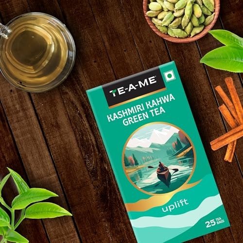 - Kashmiri Kahwa Green Tea: Discover a holistic path to wellness with TE-A-ME Kashmiri Kahwa Green Tea, a symbol of purity and vitality. Each pack contains 25 expertly crafted tea bags, designed to support a healthier lifestyle. Savor the revitalizing qualities of green tea, known to aid in weight management, as you begin your journey toward improved well-being. TE-A-ME Kashmiri Kahwa Green Tea is celebrated as one of the finest green teas, delivering a truly refreshing experience in every cup.