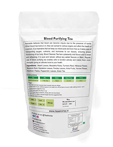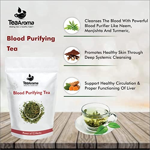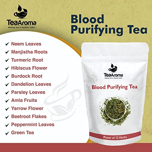 Tea Aroma – Blood Purifying Tea for Glowing Skin | Detox, Blood Cleansing with Neem Leaves, Manjistha, Hibiscus, Yarrow Flower, Beetroot, Amla | Herbal Blood Detox Tea – Fast Shipping to USA & Canada