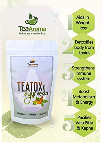 Tea Aroma Teatox Ayurveda – |14 Ayurveda Herbs & Barks| Weight management |Detox| Immunity Booster| Garcinia Cambogia| Triphlaa| Punarnava|Guggul|Papaya Leaves| Organic|100g|Loose leaves – Fast Shipping to USA & Canada