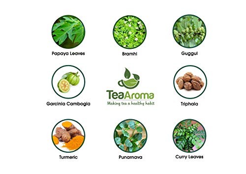 - Exceptional Fusion of Ayurveda: True to its name, this herbal tea features a harmonious blend of essential Ayurvedic components, including Triphala, Brahmi, Garcinia Cambogia, Kalonji, Punarnava, Aloe Vera leaves, cumin seeds, black pepper, ginger, cinnamon, guggul, papaya leaves, curry leaves, and turmeric.