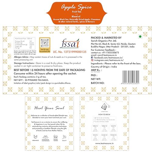 10 reviews for Tea Treasure Organic Apple Spice Fruit Tea – 25 Pyramid Tea Bags – Blend of Assam Black Tea, Naturally Dried Apple, Adrak, Long & Cinnamon | Premix Spice Tea | Apple Tea | 1 Teabox – Fast Shipping to USA & Canada