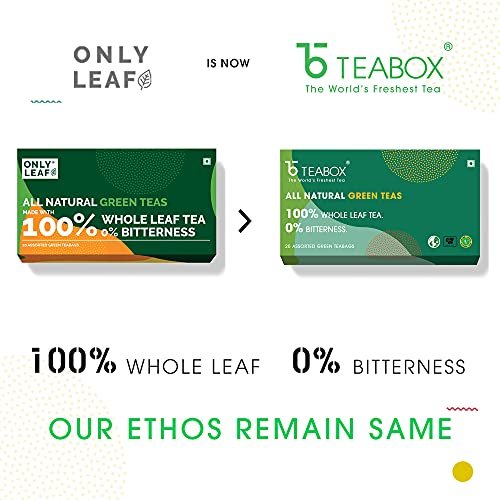 Teabox Assorted Green Tea Bags – 20 Count | 100% Natural Immunity-Enhancing Sampler Pack | USDA Certified Organic Green Tea | 2 Teabags of Each of 10 Flavors