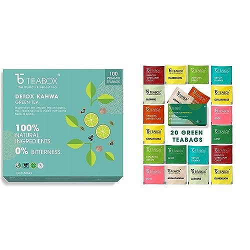 Teabox Detox Kahwa Green Tea – 100 Teabags | Crafted with 8 Natural Ingredients | Aids in Cleansing | Boosts Immunity | Provides Cold Relief