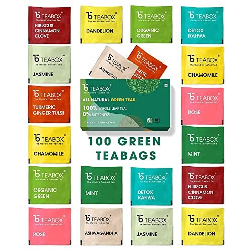 Teabox Green Tea Sampler Bags 100pcs (10pcs X 10 flavors) | 100% Natural | Immunity-Enhancing Sampler Pack | USDA Certified Organic Green Tea