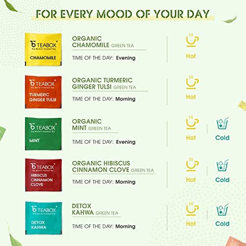 Excellent variety in one box. Lets you explore multiple green teas with different flavor notes.