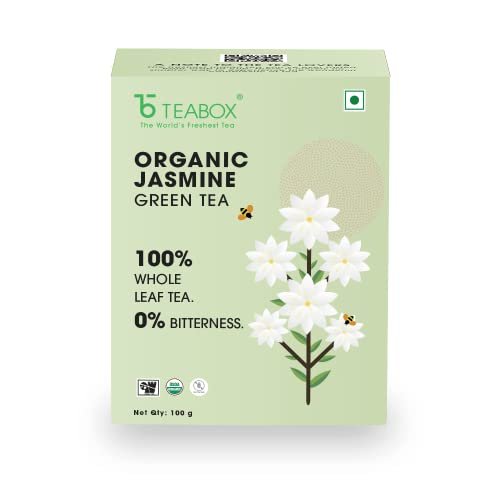 Teabox Organic Jasmine Green Tea 100g | Harvested from Madurai | For Tranquility and Relaxation | Composed of 100% Whole Leaf, Natural Jasmine Flowers & Authentic Flavors