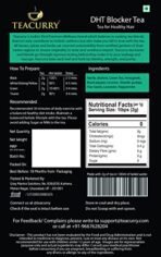 - Completely Natural Plant-Based Tea – Teacurry offers a plant-based DHT Blocker tea that is free from soy and gluten. This tea contains no added sugars or artificial sweeteners, making it entirely safe for long-term use and 100% vegetarian. It is enriched with a variety of herbs, including Nettle, Brahmi, Green Tea, Fenugreek, Black Pepper, Licorice, Shankh-pushpi, and Flax Seeds.