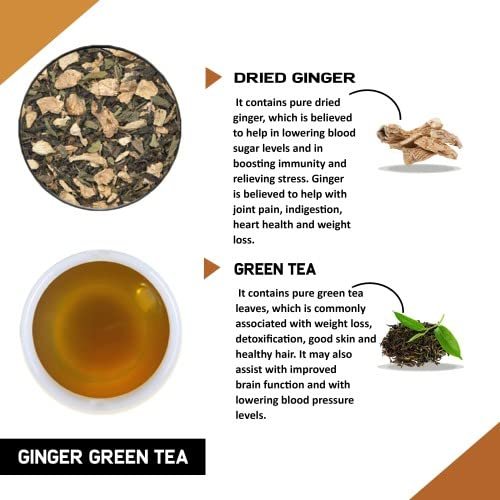- A Sip of Wellness – TeaCurry’s Ginger Green Tea is composed of the finest ginger varieties and premium green tea leaves. This tea aids in alleviating osteoarthritis, improving digestion, regulating blood sugar levels, promoting heart health, and supporting weight loss. Ginger may inhibit fat accumulation in arteries, potentially reducing the risk of heart attacks and strokes. Additionally, Ginger Green Tea possesses soothing properties that may help diminish stress and tension.