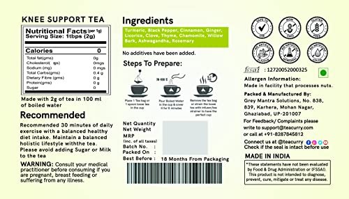 TEACURRY Knee Support Tea (1 Month Pack, 30 Tea Bags) – Helps with Knee Pain, Inflammation, Discomfort (1 Month Pack | 30 Tea Bags) – Fast Shipping to USA & Canada