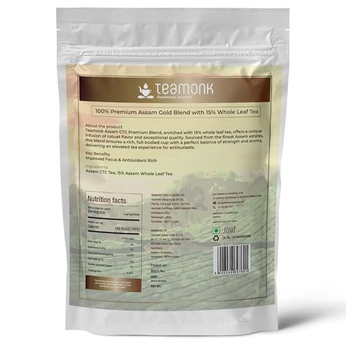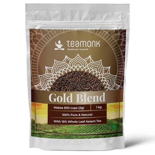 Teamonk – CTC Gold Assam Black Tea (500 Cups) – 1kg Pouch | 15% Whole Leaf Tea Blend | Family Pack | Unique Blend | Savings Pack | Premium Chai | No Artificial Flavour. Strong Taste & Aroma – Fast Shipping to USA & Canada