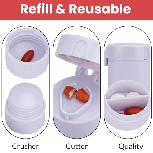 - SAFE PLASTIC PILL CASE: Made from high-quality, food-grade plastic, this pill splitter is both safe and durable-perfect for direct contact with your medication. The pill organizer holds 4-10 pills and features a secure, tightly sealed lid to protect your tablets from moisture and dust.