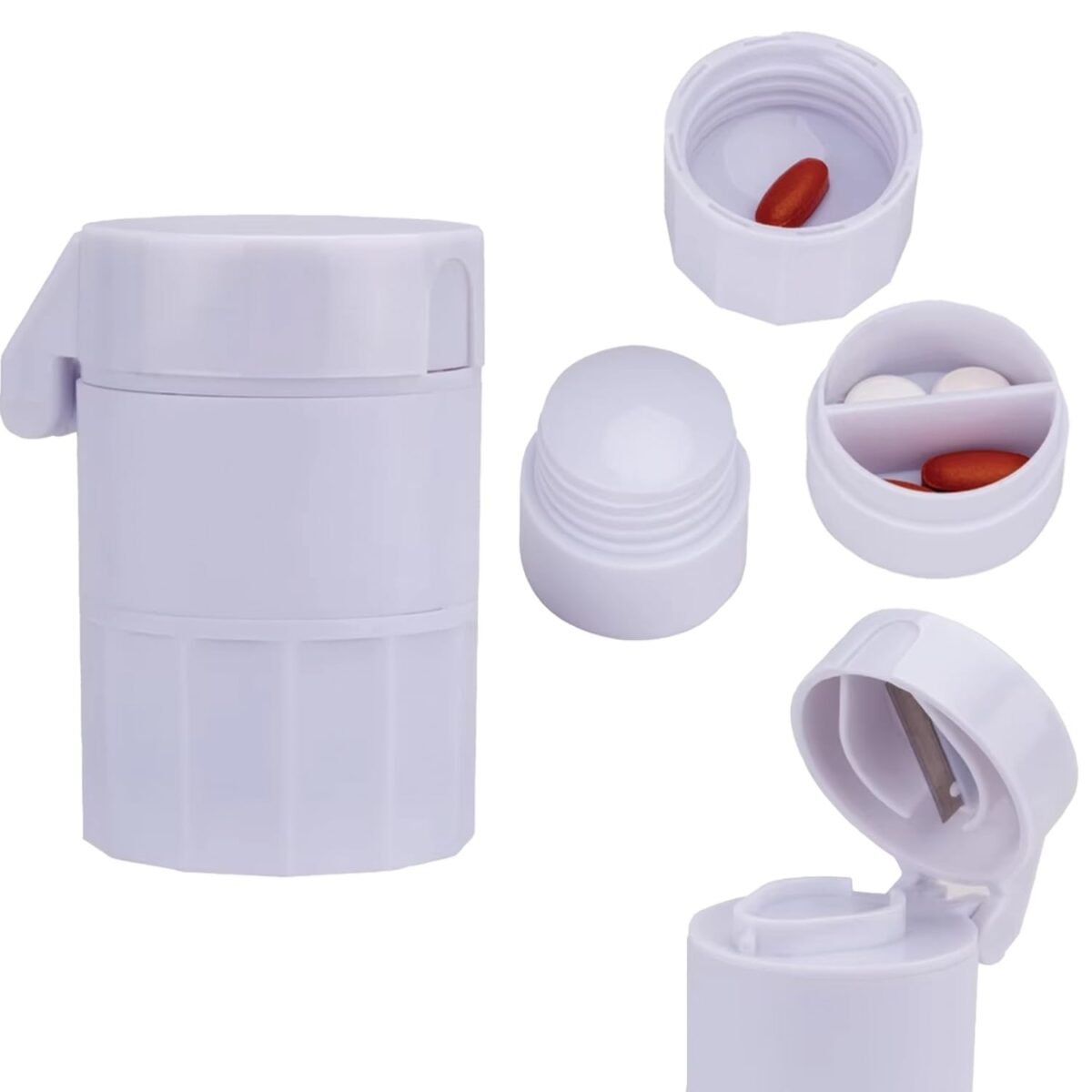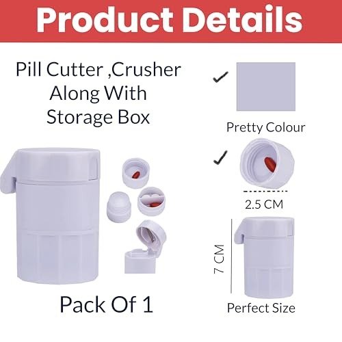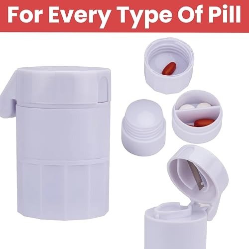 - 2-in-1 Pill Box with Tablet Cutter: This handy pill box combines a pill cutter and storage compartment in one convenient design. Featuring a durable stainless steel cutting area and a separate space for storing your pills, it?s perfect for keeping your medication organized and easy to access. Suitable for a variety of pill sizes, this 2-in-1 case not only keeps your pills safe but also makes splitting and taking them much simpler.