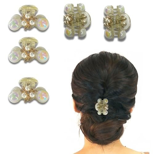 TEMPERIA (5 pcs) Pearl Hair Clips for Women & Girls – Clutcher Clutches Claw Clip Accessories – Stylish, Fashionable (DN01) – Fast Shipping to USA & Canada