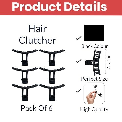 7 reviews for TEMPERIA (6 pcs) Hair Clips for Women & Girls – Clutcher Clutches Claw Clip Accessories – Stylish, Fashionable (Black) (DN04) – Fast Shipping to USA & Canada