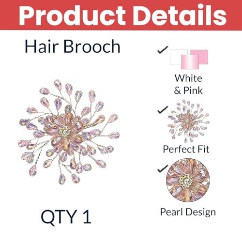 • What?s included: 1 hair brooch featuring a pink flower and white pearl accents