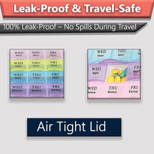 - BPA-FREE, STRONG, AND DURABLE: Designed with an airtight seal and secure locking mechanism, this pill organizer keeps your medication safely inside-no spills, even on the go. Made from tough, BPA-free translucent plastic, it?s built to withstand daily use and accidental drops without breaking. Lightweight and perfectly sized for anyone, this pill holder is made to last a lifetime.