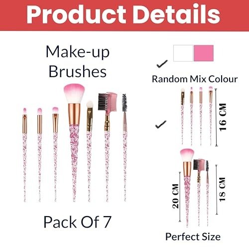 - 7-PIECE MAKEUP BRUSH SET ? This set includes everything you need for a flawless look: a foundation brush, blush brush, eyeshadow brush, contour/nasal shadow brush, eyebrow brush, lip brush, and eyelash brush. Perfect for creating simple, beautiful makeup every day.