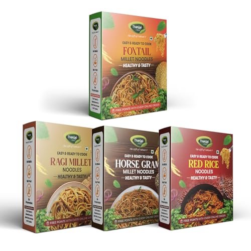 10 reviews for Thanjai Natural Millet Noodles 180 Grams X 4 Varities (720 Grams) of Homemade Natural Foxtail | Horsegram | Ragi and Red Rice Millets Noodles(Preservative Free, No Chemicals, No Artificial Extract) – Fast Shipping to USA & Canada