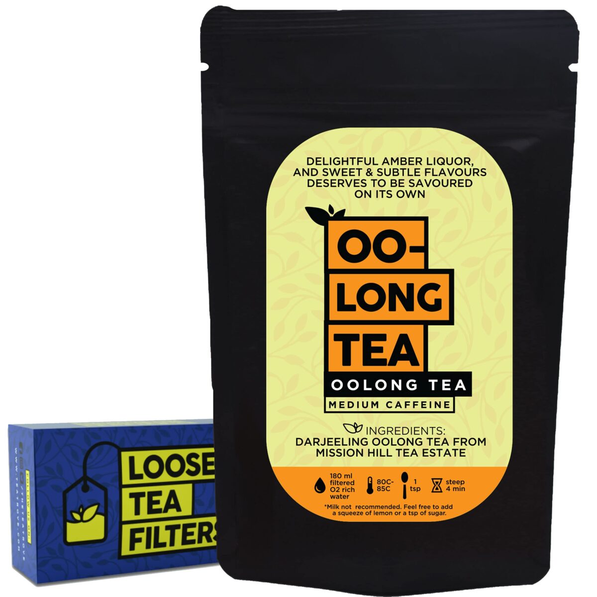 - Ingredients: Darjeeling Oolong Tea sourced from Mission Hill Tea Estate; Caffeine Content: Moderate