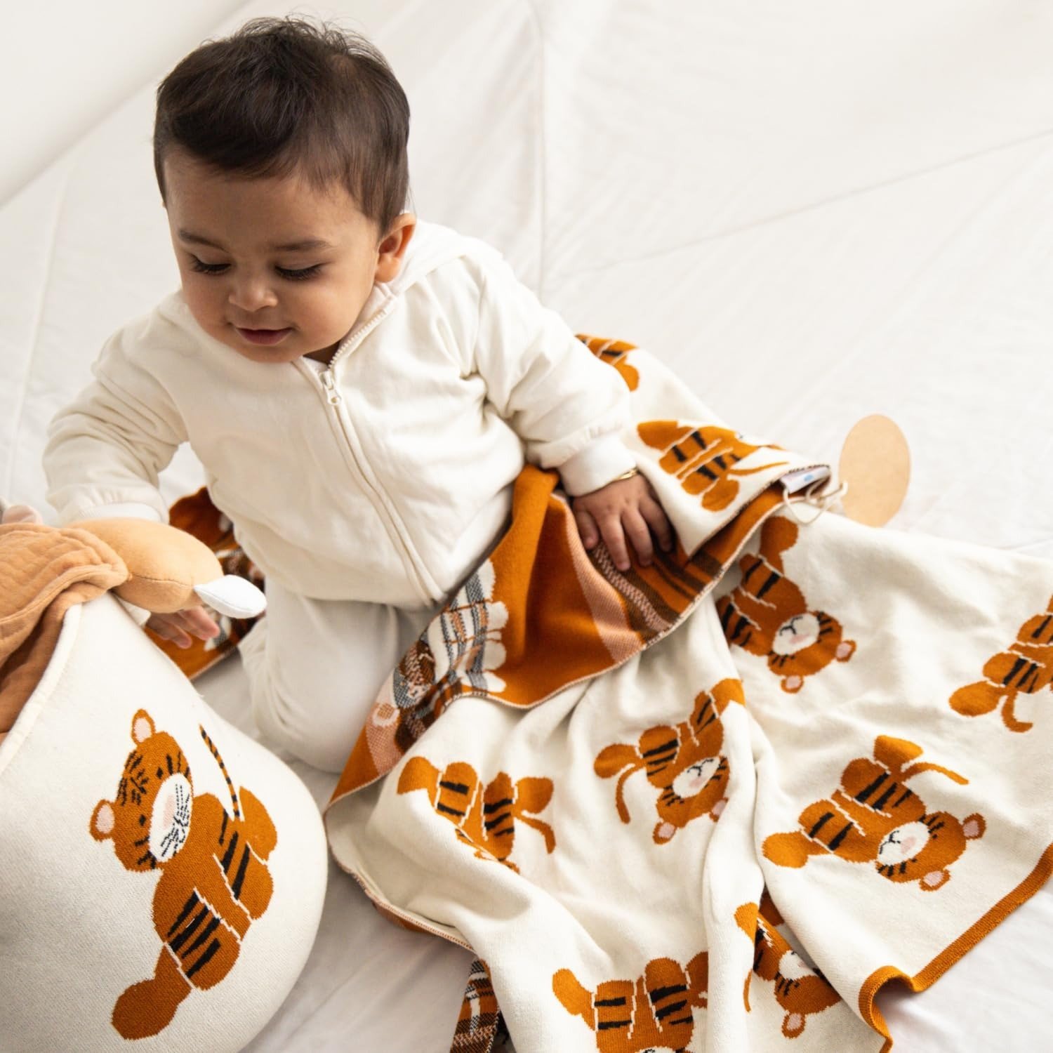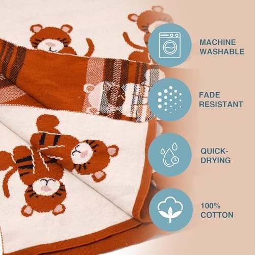 TIDY SLEEP 100% Cotton Knitted Blanket for New Born Baby, Soft and Breathable Quilt Wrapper for New Born Boy & Girl | Size 100 cm x 80 cm, 0 to 18 Month (Tiger Print) – Fast Shipping to USA & Canada