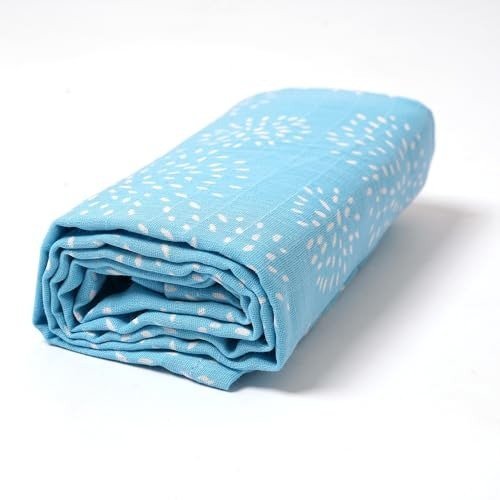 TIDY SLEEP 100% Cotton New Born Baby Muslin Swaddle Wrapper | Newborn Little Finder Soft Blanket for 0-6 Months |Pack of 1|100 cm x 100 cm (Blue Puff) – Fast Shipping to USA & Canada
