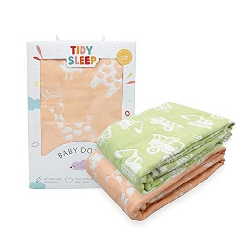 TIDY SLEEP Baby Blankets 6 Layer Wraper 100% Cotton Stroller Cover Receiving Blankets, (Pack of 2) (Peach & Green) – Fast Shipping to USA & Canada
