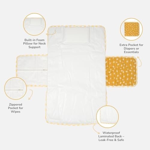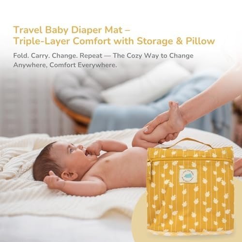 Tidy Sleep Baby Portable Diaper Changing Mat – Waterproof, Foldable Travel Mat with Storage Pockets & Soft Padding Pillow-Easy-to-Carry Changing Station Organizer for Newborns & Toddlers (Golden Petals) – Fast Shipping to USA & Canada
