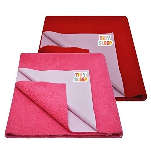 Tidy Sleep Instadry Anti-Piling Fleece Extra Absorbent Quick Dry Sheet for New Born Babies, Cotton Bed Protector Mattress Pack of 2 Pink-Red Medium (100×70) cm – Fast Shipping to USA & Canada