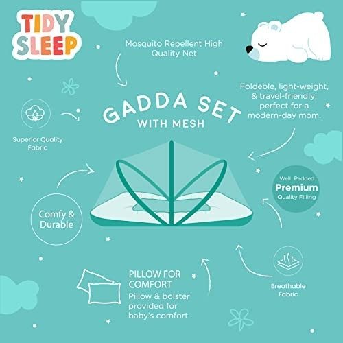 TIDY SLEEP Mosquito Net Bedding for Baby | Baby Gadda for New Born| 0Months+ | Size:90x65Cm | (Our Mission) – Fast Shipping to USA & Canada