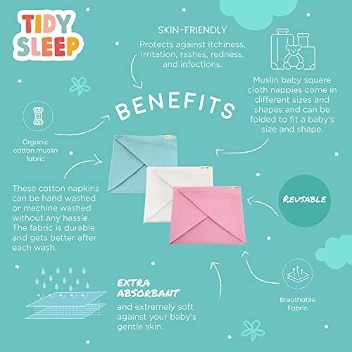 TIDY SLEEP Muslin Cotton Baby Square Cloth Nappy for Baby| Reuseable Washable Nappy (0-12 Months) – Fast Shipping to USA & Canada