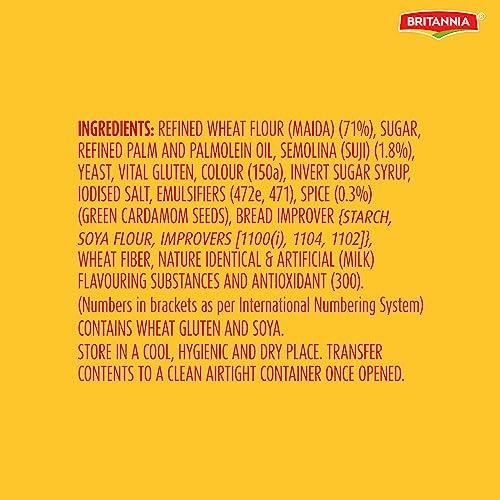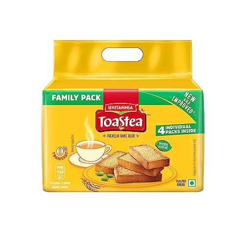 Britannia Toastea Premium Bake Rusk, enriched with the wholesome goodness of wheat, has long been a cherished companion for tea enthusiasts. Its crispiness rivals that of traditional rusks, enhanced by the delightful flavor of real elaichi and a perfect touch of sweetness that will astonish your taste buds. For years, Britannia Toastea Premium Bake Rusk has been a staple in households, creating moments of joy and togetherness.