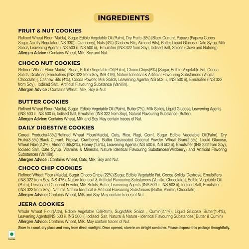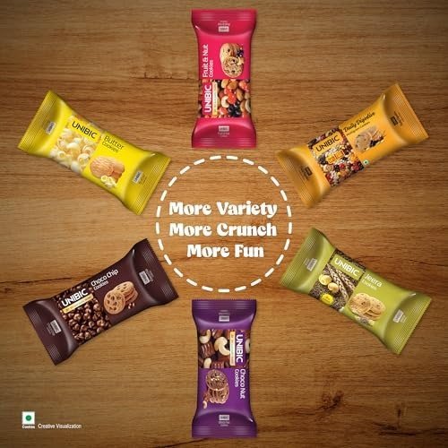 Treat your palate to an exceptional cookie adventure with the Unibic Assorted Cookies Pack of 6. Expertly crafted using the acclaimed wire-cut technique, each cookie delivers an ideal balance of texture and irresistible flavor that will have you reaching for another. This assorted selection showcases a tempting variety of tastes: the decadent Choconut Cookies, the timeless Choco Chip Cookies loaded with chocolate chips, the delightful medley of Fruit & Nut Cookies, the hearty and nourishing Honey Oatmeal Cookies, the buttery smoothness of classic Butter Cookies, and the distinctive, aromatic Doosra Jeera Cookies. Every bite offers a symphony of flavors, from the crisp outer layer to the soft, chewy center, guaranteeing a satisfying treat with each mouthful. Perfect for a personal indulgence or for sharing with friends and family, these cookies are an ideal companion for any occasion. Upgrade your snack time and savor the finest assortment with the Unibic Assorted Cookies Pack of 6. Add it to your cart today and discover the irresistible flavors that will have you coming back for more!