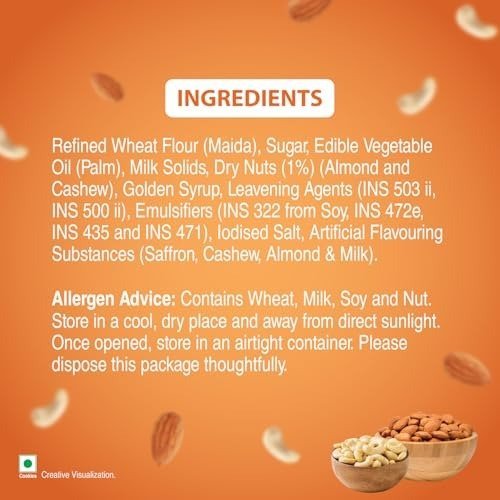 • CRAFTED WITH PREMIUM CASHEWS ? Our Cashew Badam Cookies feature 8.4% luscious cashews, delivering a delightful combination of crisp texture and rich flavor. Each mouthful provides a harmonious nutty taste, making these cookies truly irresistible.
