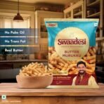 Butter Murukku ? South India?s beloved snack, now crafted for a healthier twist. This crisp murukku is prepared with a mix of rice flour and besan, delicately seasoned, and melts in your mouth with a rich, buttery flavor that keeps you reaching for another bite!