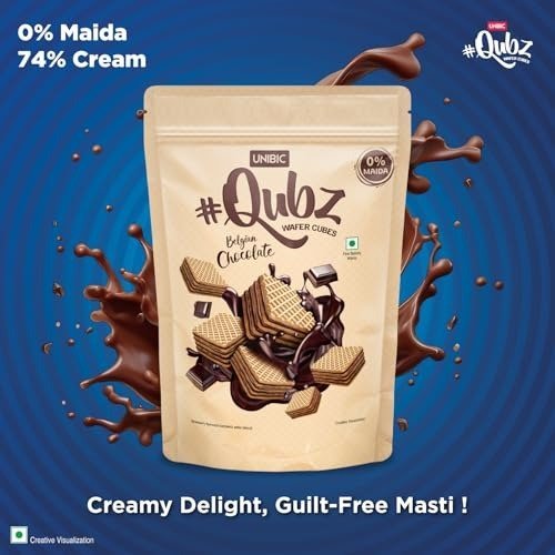 Savor the luscious pleasure and carefree fun of Unibic Qubz. Made with 0% maida and packed with over 70% Belgian chocolate cream, these irresistible wafer cubes offer a truly decadent experience without the guilt.