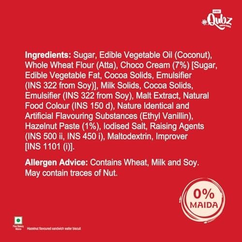 Savor the luscious pleasure and carefree fun of Unibic Qubz. Made with 0% maida and packed with over 70% choco hazelnut cream, these irresistible wafer cubes let you enjoy a rich, decadent flavor without the guilt.