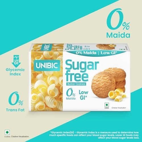 UNIBIC Sugar Free Butter Cookies are crafted with 100% whole wheat flour and enriched with the benefits of oats. With no added sugar and a very low glycemic index, they make an ideal choice for healthy snacking.
