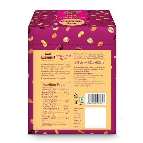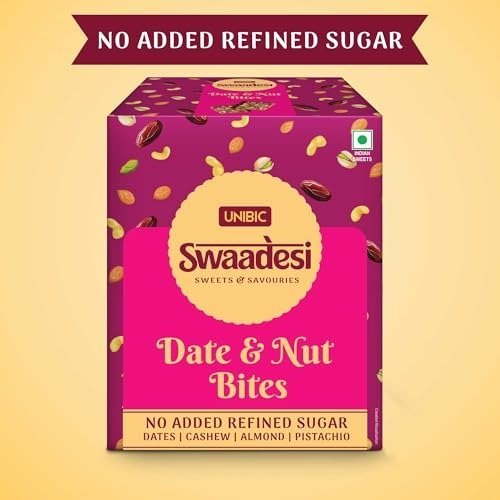 Unibic Swaadesi 100% Date & Nut Bite I Date Bites I Dates Barfi Made with Dates, Almonds, Cashew and Pistachio I Dry Fruits Nuts, Healthy Delicious Indian Sweets, Gluten Free I 300 Gm (30 gm*10) – Fast Shipping to USA & Canada