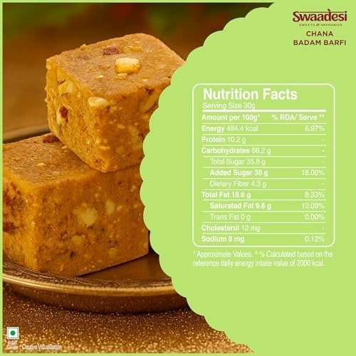 - Crafted with pure ghee, premium dry fruits, and fragrant roasted besan, Swaadesi presents India?s beloved Barfi, now prepared to Unibic?s world-class hygiene standards. Treat yourself wholeheartedly!