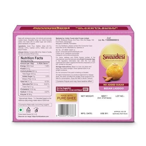 Unibic Swaadesi No Added Sugar Besan Laddoo – Fast Shipping to USA & Canada