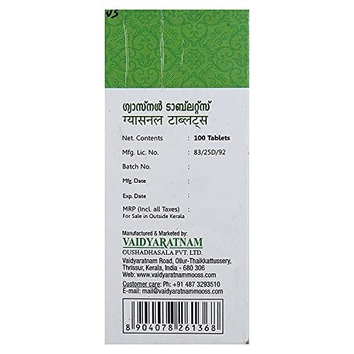 - Vaidyaratnam Gasnull Tab,100 Tablets, Brand :- Vaidyaratnam ,Gasnull Tab, 100 Tab, Package contents: 100 Tablets,Good Product