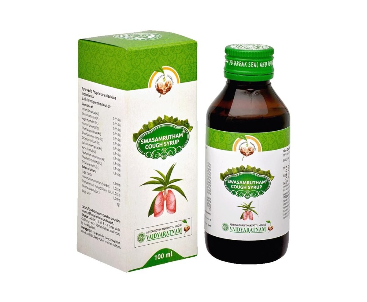 Vaidyaratnam Swasamritham – 100 ml, Ayurvedic Relief for Cough & Breathlessness | Cough Relief | Ayurvedic Medicine for Breathlessness