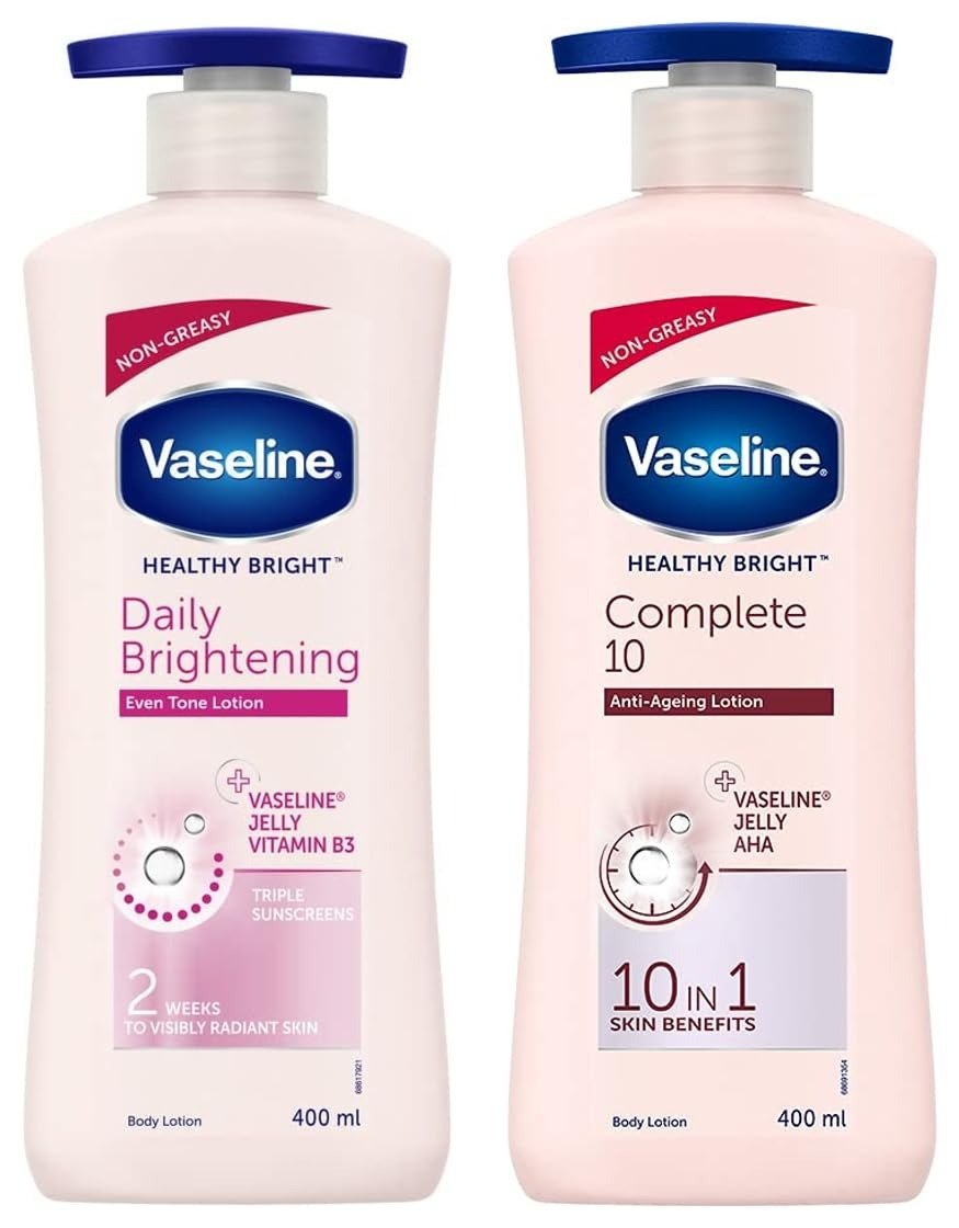 Vaseline Healthy Bright Body Lotion 400 ml, Daily Brightening Moisturizer with Sunscreen & Vaseline Healthy Bright Complete 10 Body Lotion, Anti- Ageing Lotion, 400 ml – Fast Shipping to USA & Canada