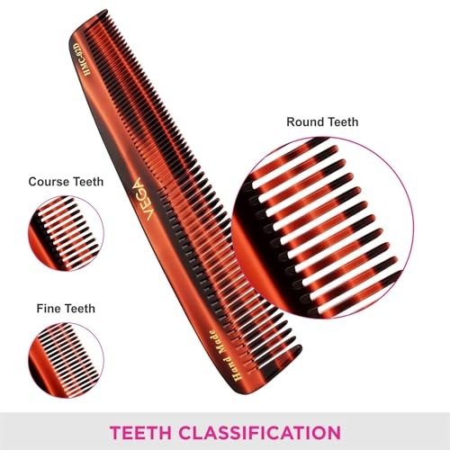 Vega Graduated Tortoise Shell Pattern Dressing Hair Comb,Handmade (India’s No.1* Hair Comb Brand)For Men and Women, (HMC-02D) – Fast Shipping to USA & Canada