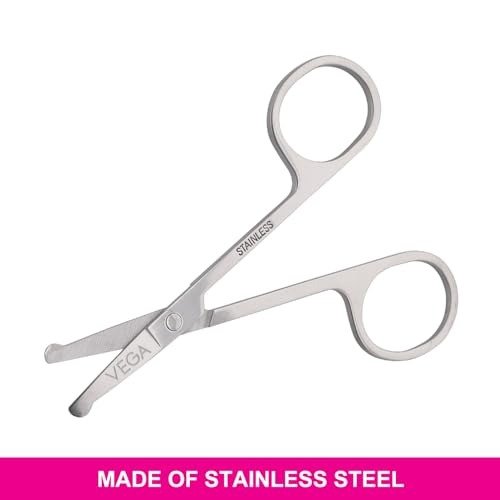 - Vega nasal safety scissors are specifically crafted to trim nasal and ear hair safely and effortlessly. The precision tips of these stainless steel scissors feature a rounded design to enhance safety during use.